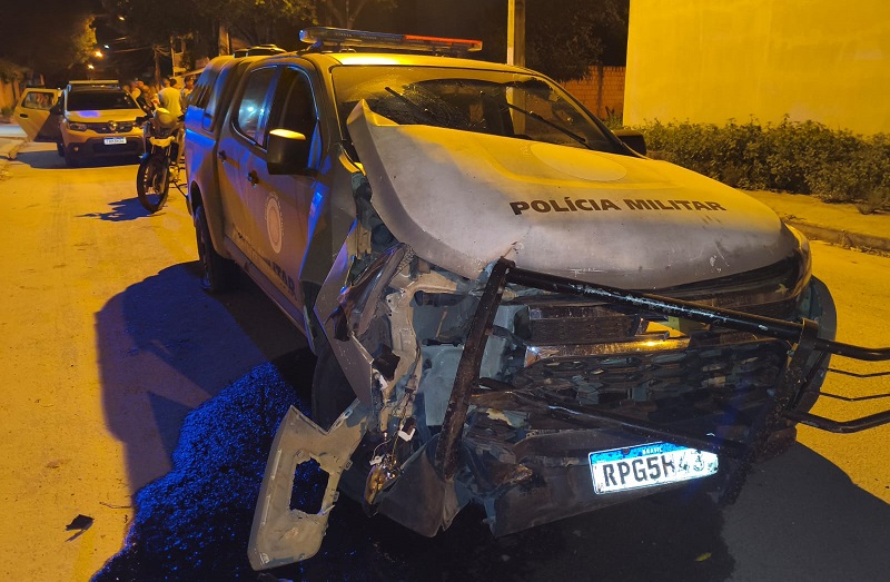 A viatura que realizava o acompanhamento, para evitar a colisão com a motocicleta, precisou desviar bruscamente em uma manobra de extremo risco. O motorista perdeu o controle do veículo, que colidiu frontalmente contra duas árvores na lateral da avenida. Com a violência do impacto, os airbags foram acionados e a viatura parou metros à frente. Os policiais militares que estavam no veículo ficaram feridos e foram atendidos pelo Serviço de Atendimento Móvel de Urgência (SAMU) , devendo passar por exames de imagem para identificar possíveis fraturas ou lesões.